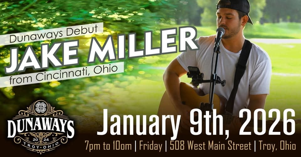 Please join us in welcoming Jake Miller for his Dunaways Debut and an evening of Country and Classic Rock. Jake will be playing music from the likes of Luke Combs, Morgan Wallen, Chris Stapleton , Tim McGraw, Kenny Chesney, Bad Company, John Mellencamp, Creed and MORE!